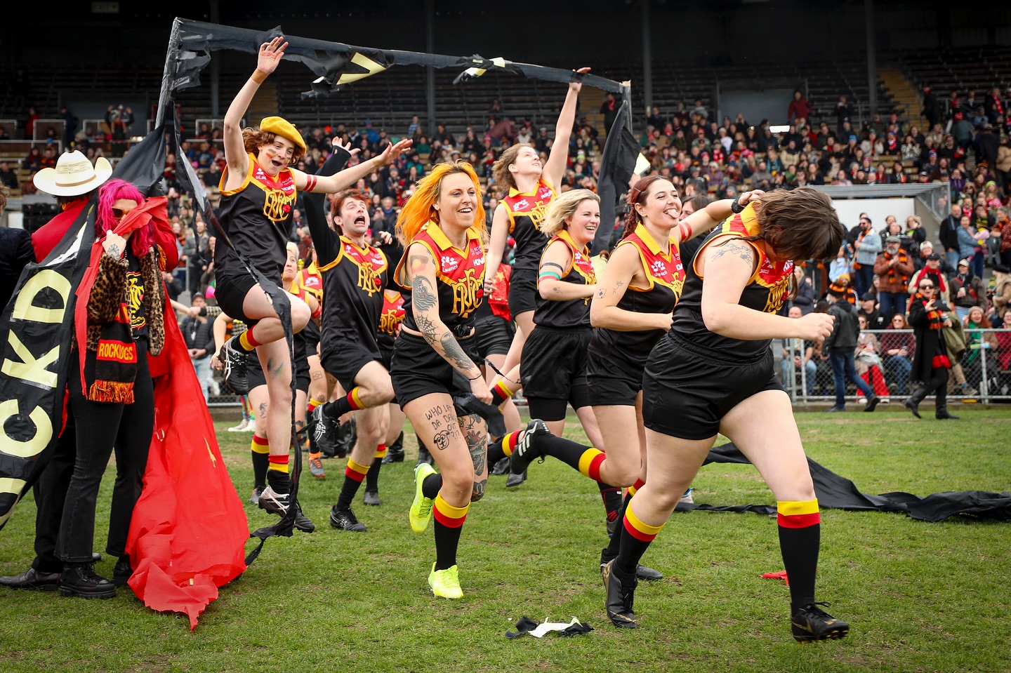 c) Remember that you’re there for the entertainment factor – to have fun and run amok; not to pretend you’re a real footy player or be focussed on winning.